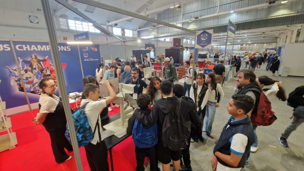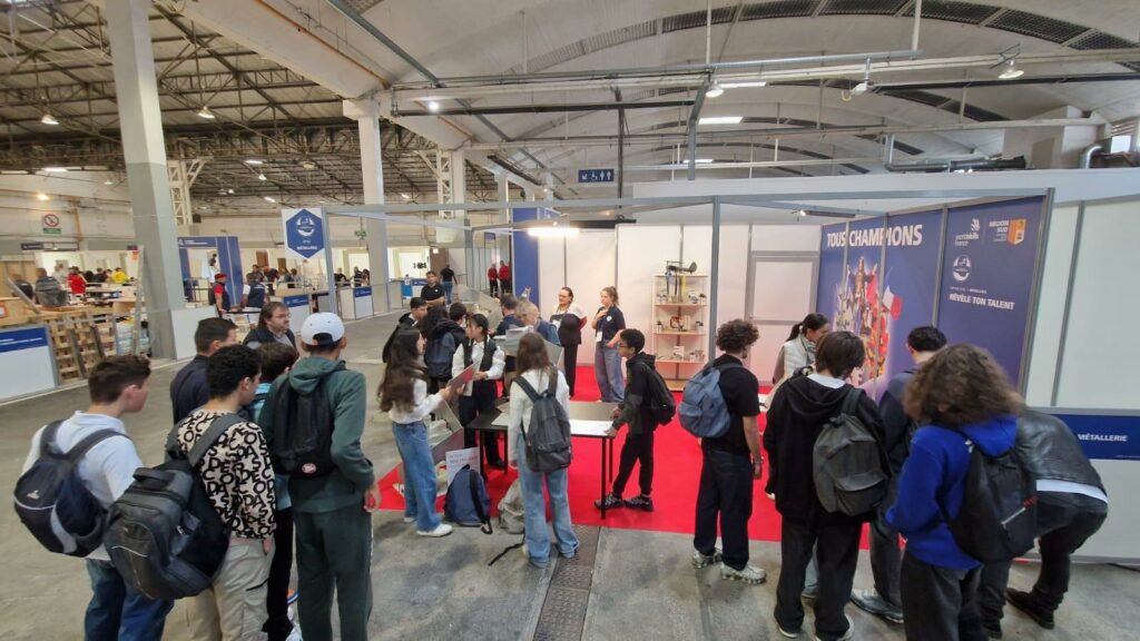 En prolongement de l’espace de compétition, l’Union des métalliers a fait découvrir la métallerie à de jeunes collégiens et lycéens locaux à travers le montage d’un escalier hélicoïdal.