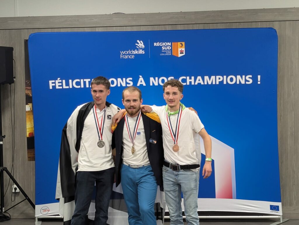 Baptiste Girault qui représentait la France à la finale internationale de Lyon 2024 était avec nous pour échanger avec les jeunes. Beaucoup de questions lui ont été posées notamment sur les œuvres des éditions précédentes de la compétition exposées sur le stand.
